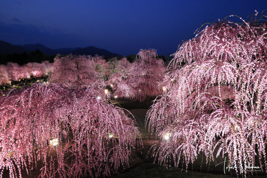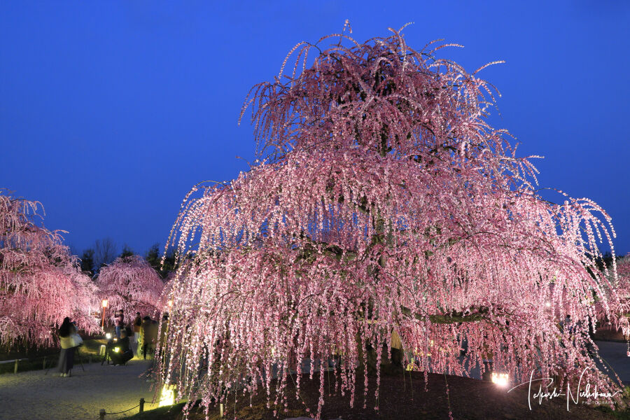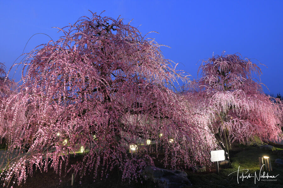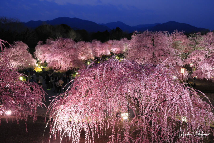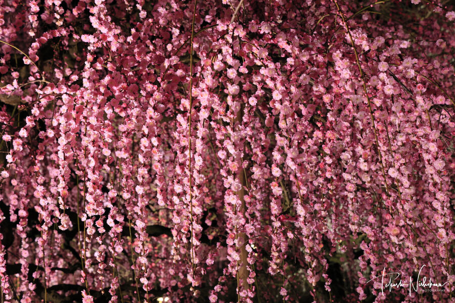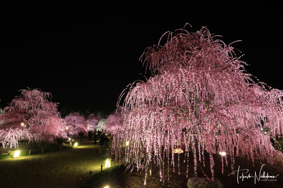 三重県鈴鹿市の鈴鹿の森庭園のしだれ梅のライトアップ夜景 3月8日分4-4。