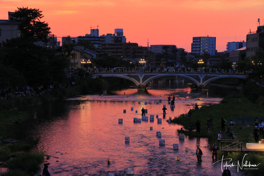 4時ごろに浅野川へ。百万石まつりの前夜に行われる加賀友禅燈ろう流しを見に行く。