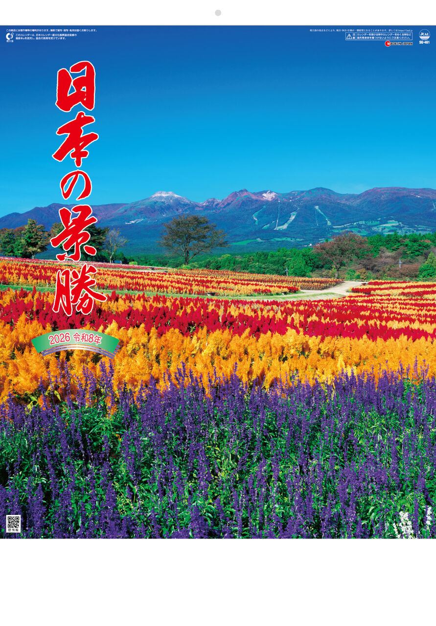 杉本カレンダー 「日本の景勝」 法体の滝の紅葉の写真が採用されています。