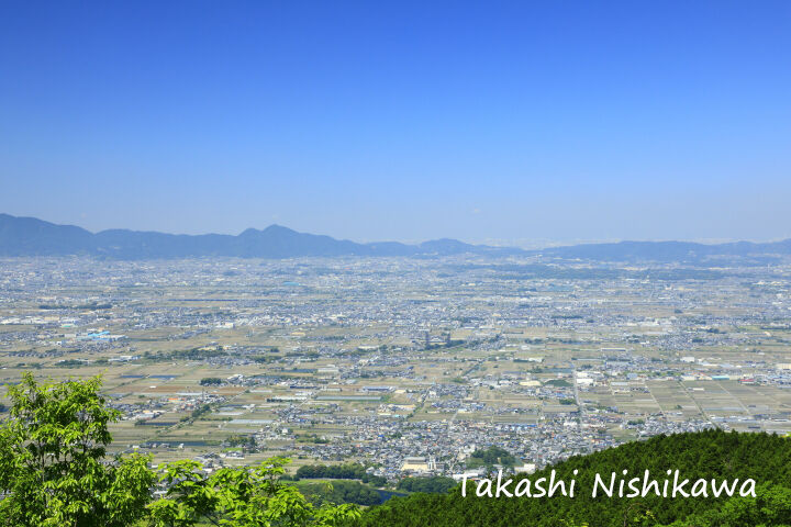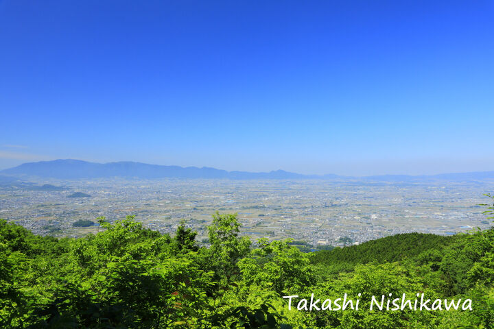 南城跡にある竜王山山頂と途中の山道沿い1か所からは展望が望めますが、