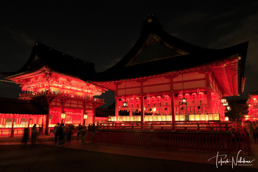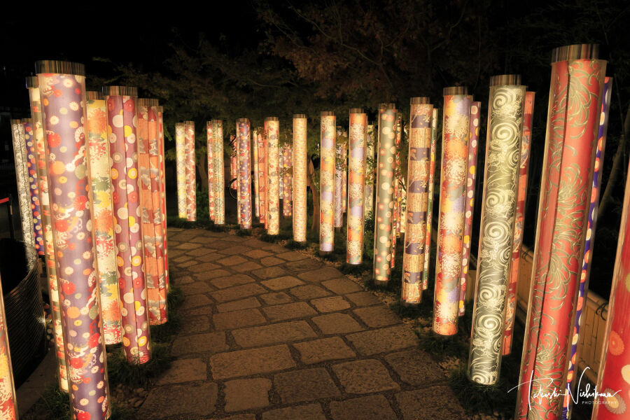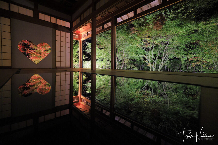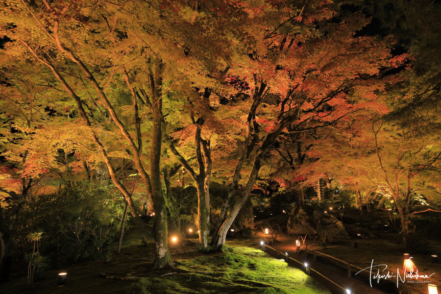 京都府宇治田原町の正寿院の紅葉ライトアップ夜景。