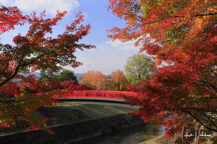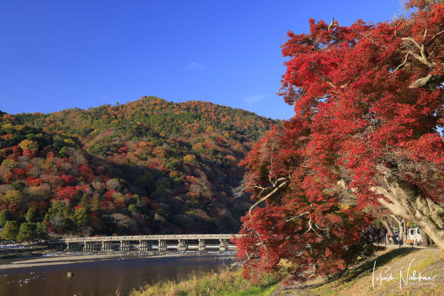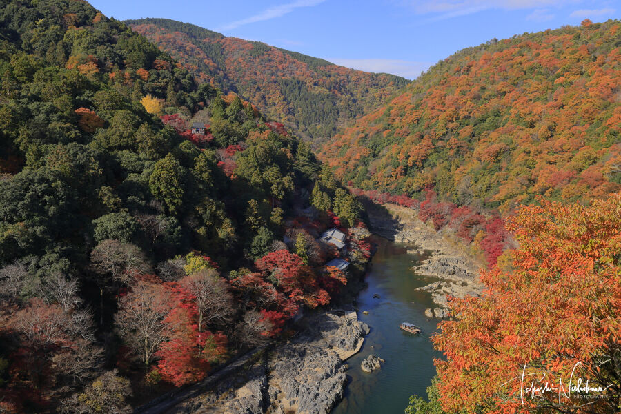 京都市の嵐峡の紅葉。