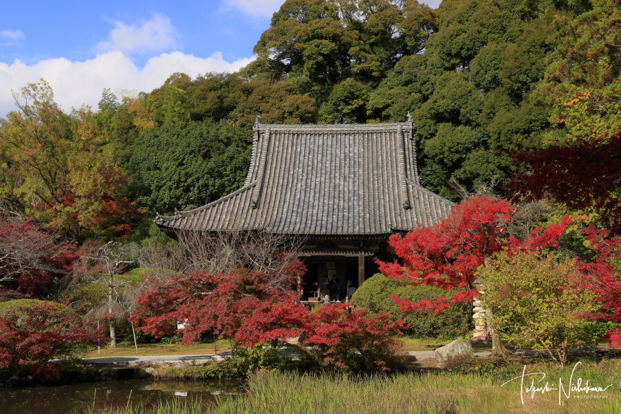 京都府宇治市の三室戸寺の紅葉。
