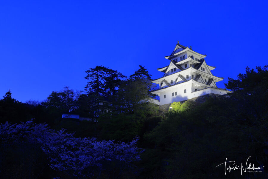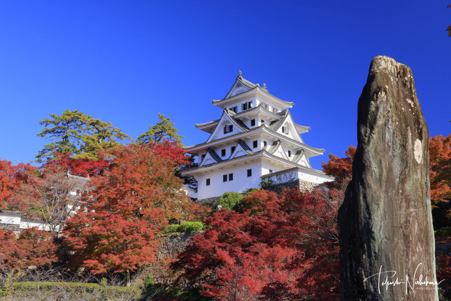 岐阜県郡上市の郡上八幡城の紅葉。
