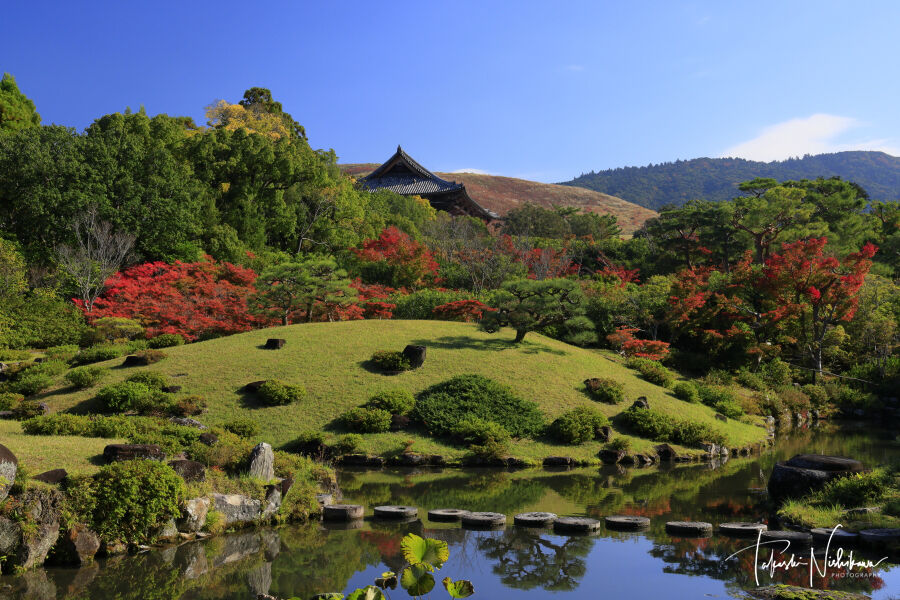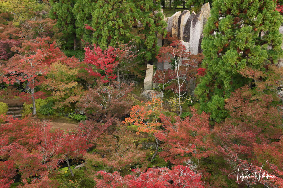 京都市の大河内山荘庭園の紅葉。