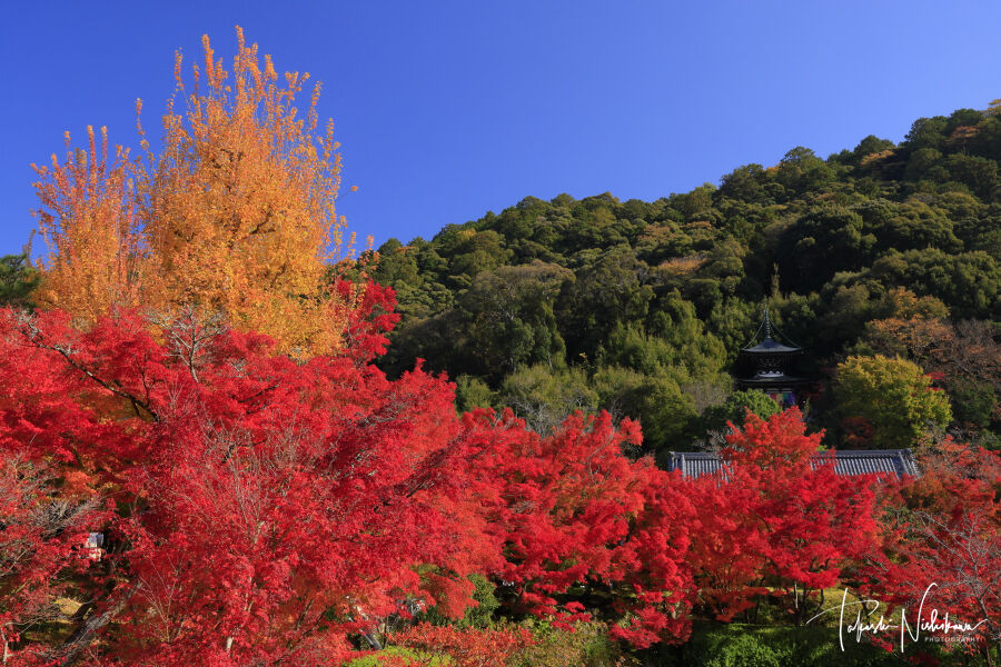 京都市の大悲閣千光寺の紅葉。
