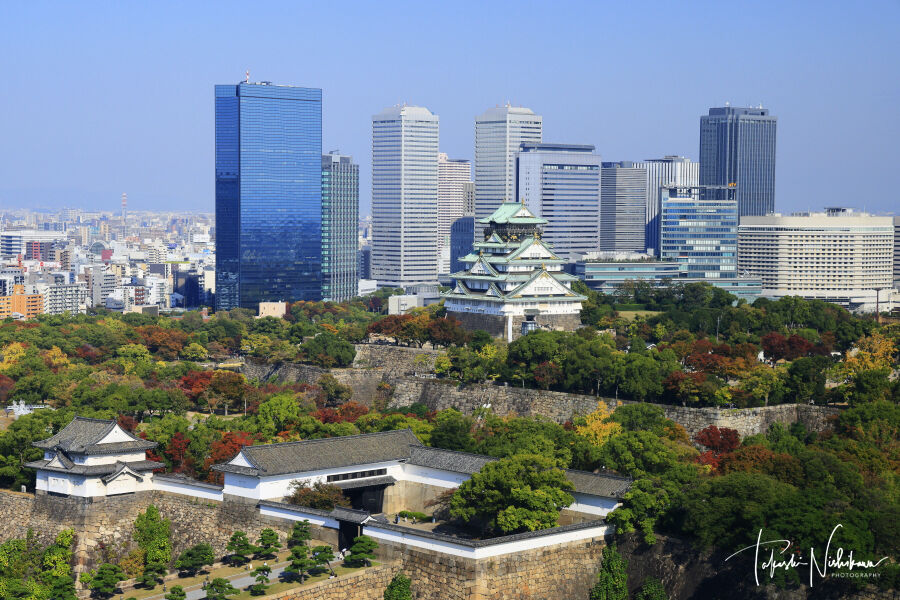 大阪市の大阪城公園の紅葉。