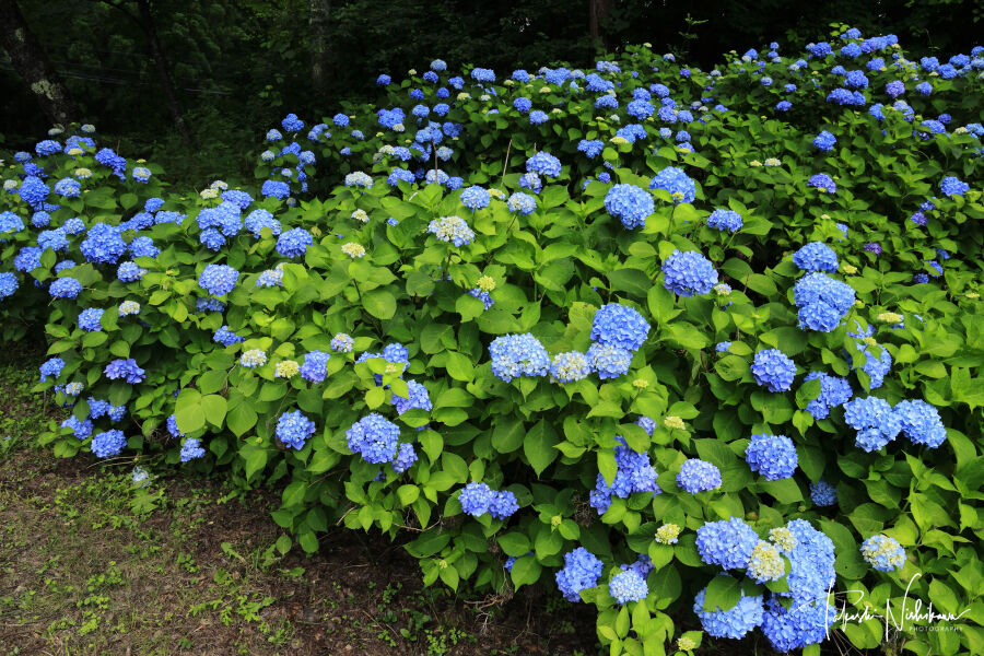 チャツボミゴケ公園分岐近くの道路沿いにある紫陽花の群落。