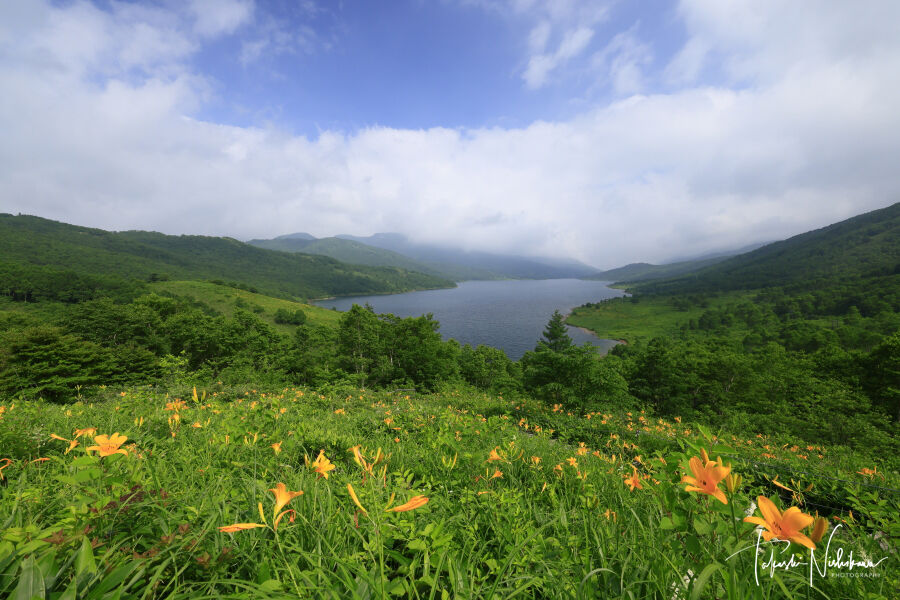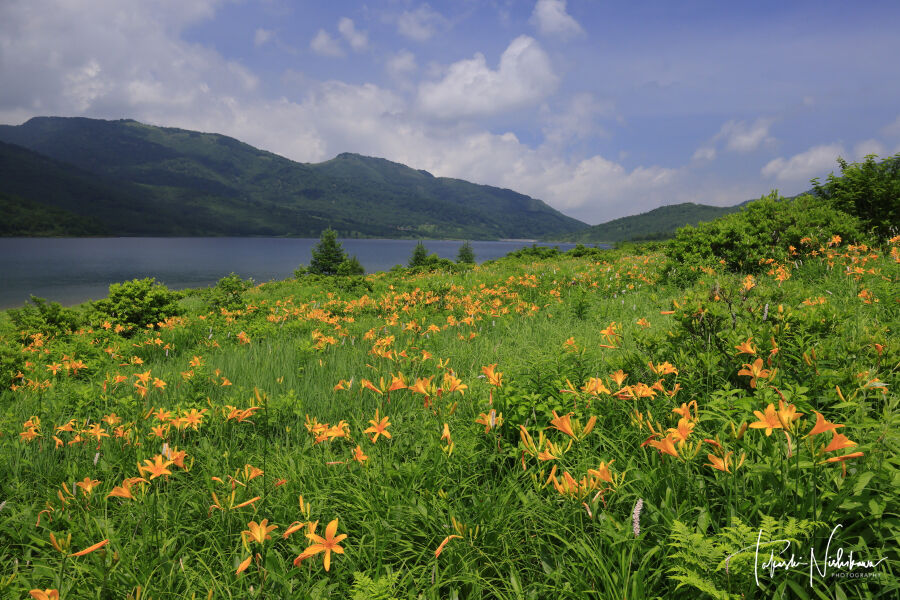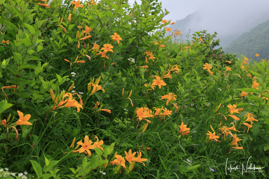 群馬県中之条町の野反湖のノゾリキスゲ 7月7日分3-1。