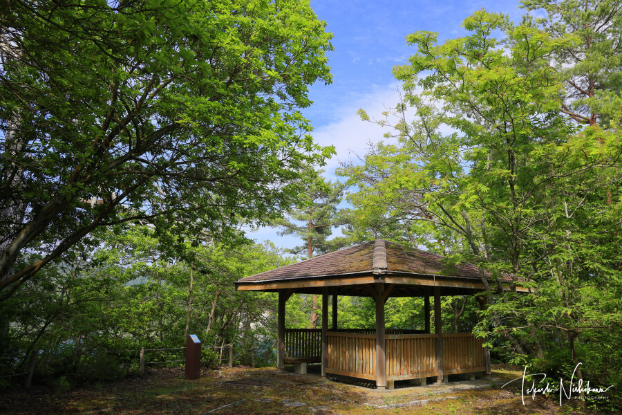 遊歩道の終点は、月見御殿跡。海の見える東屋があるだけ。