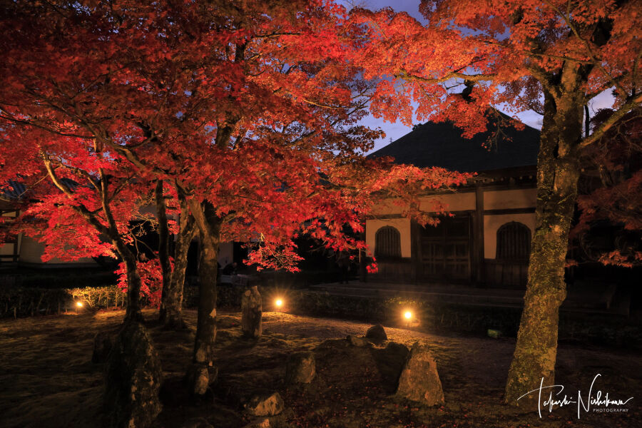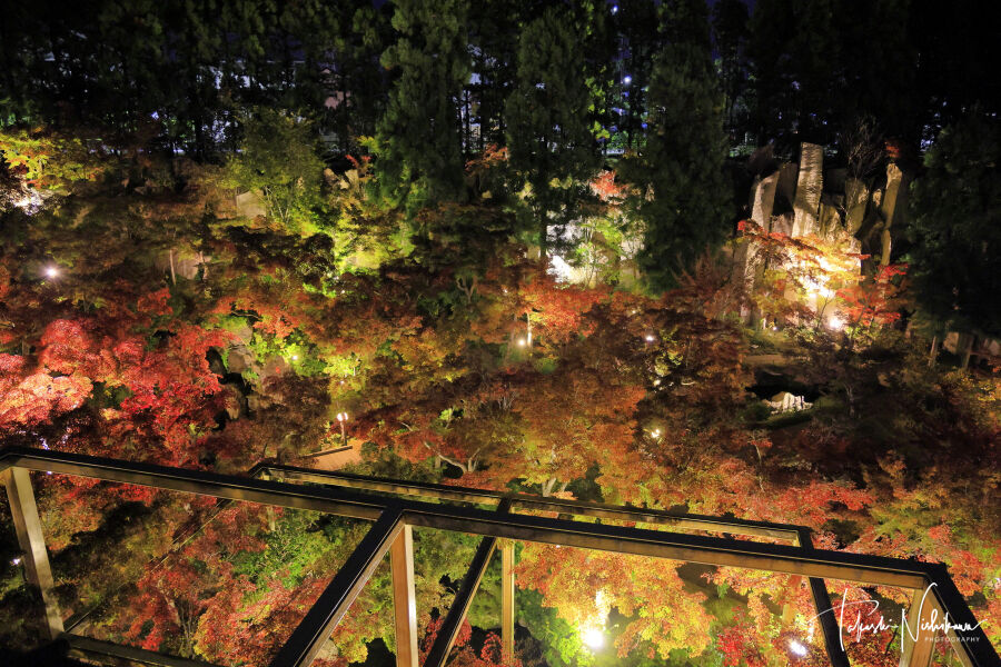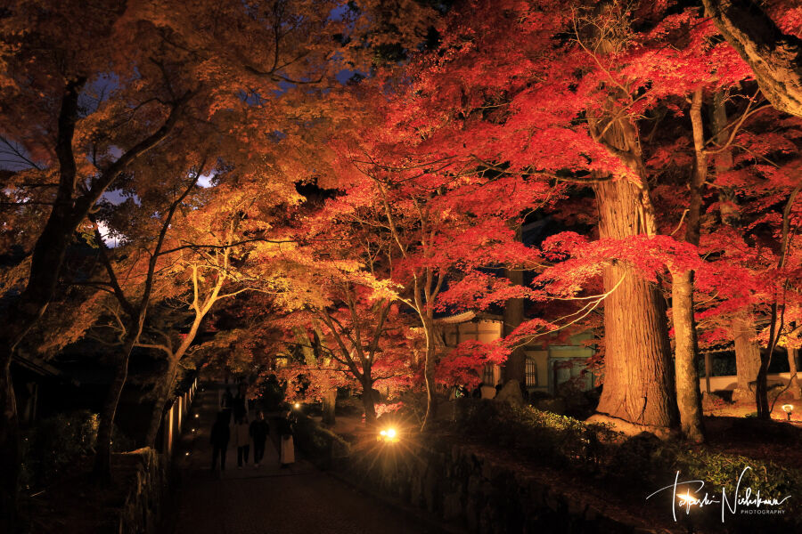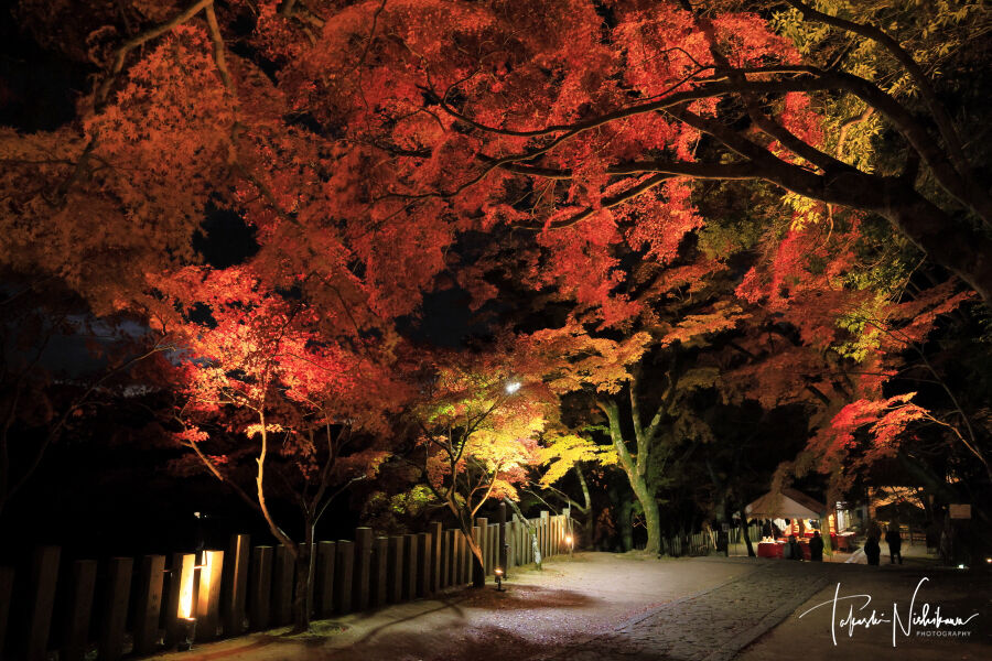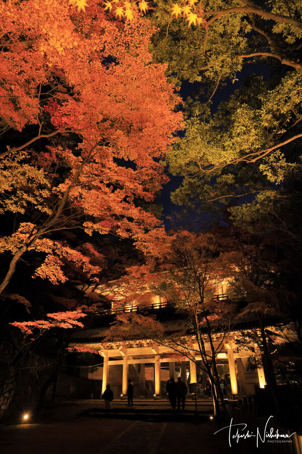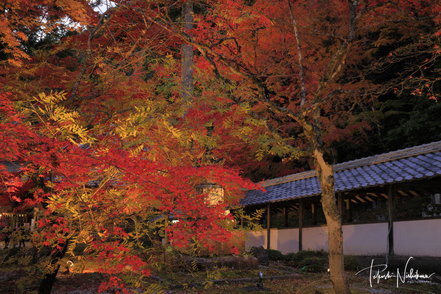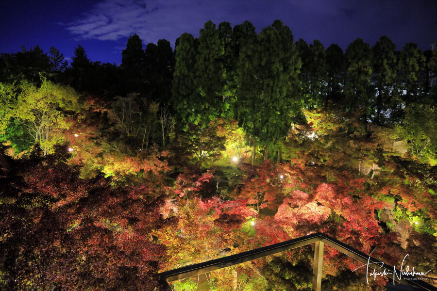 京都府京都市の京都霊山護国神社から望む夕景と高台寺の紅葉のライトアップ夜景 11月29日分6-6。