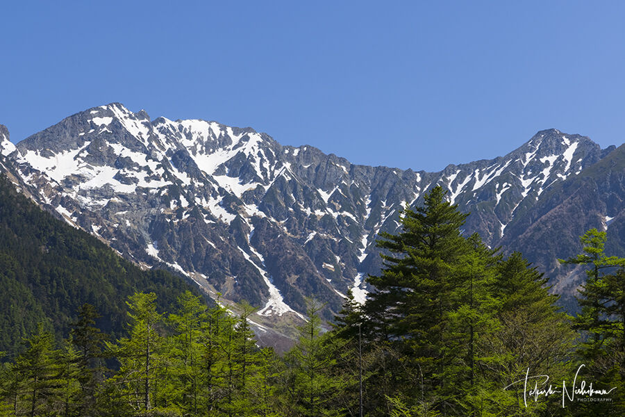 東側には常念岳から蝶ヶ岳までの稜線が見える。