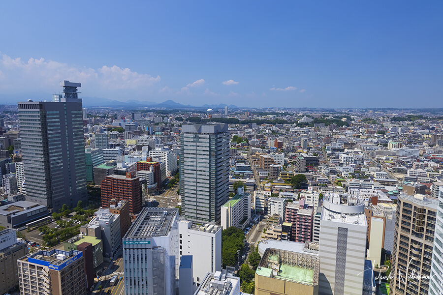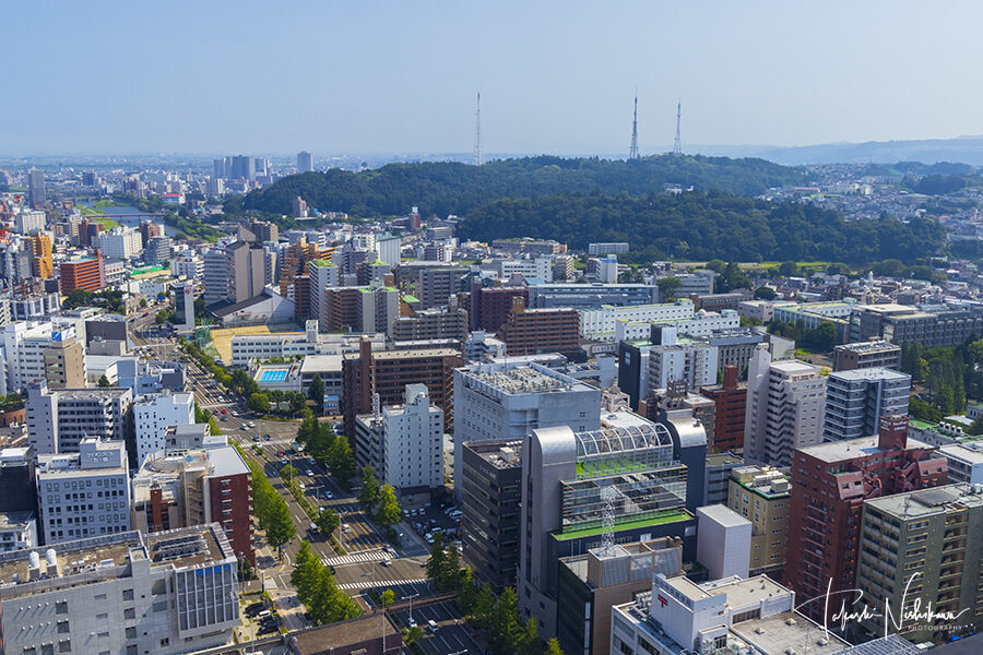 青葉城跡からの市街風景。東から東北方面の眺望がある。