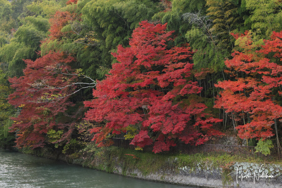 観流橋から発電所下流の紅葉。