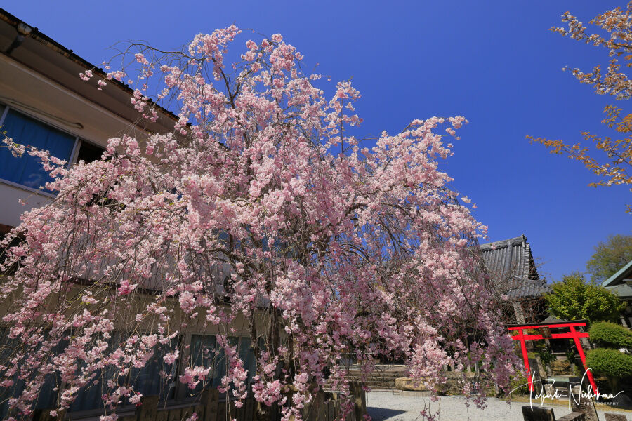 櫻本坊の八重紅枝垂れ桜は見頃。