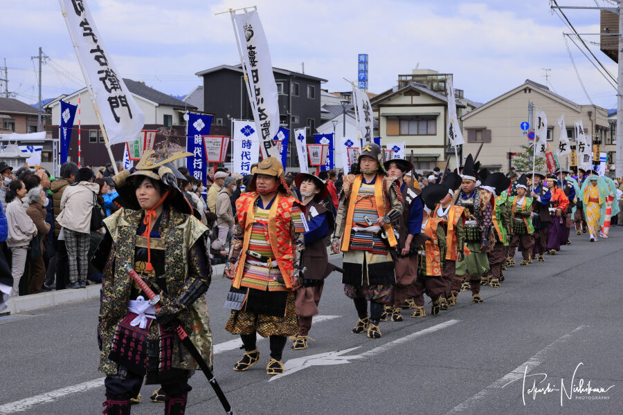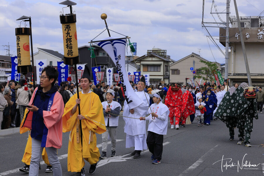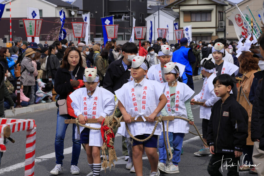 時代行列は2時にスタート。1時半に源九郎狐神社をスタートしている白狐行列が合流。