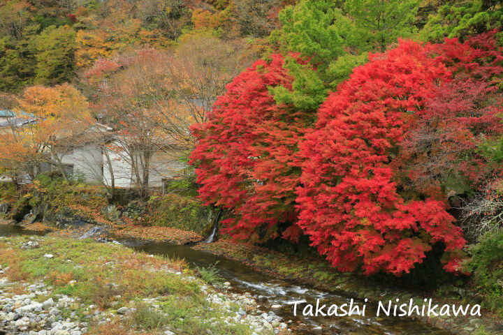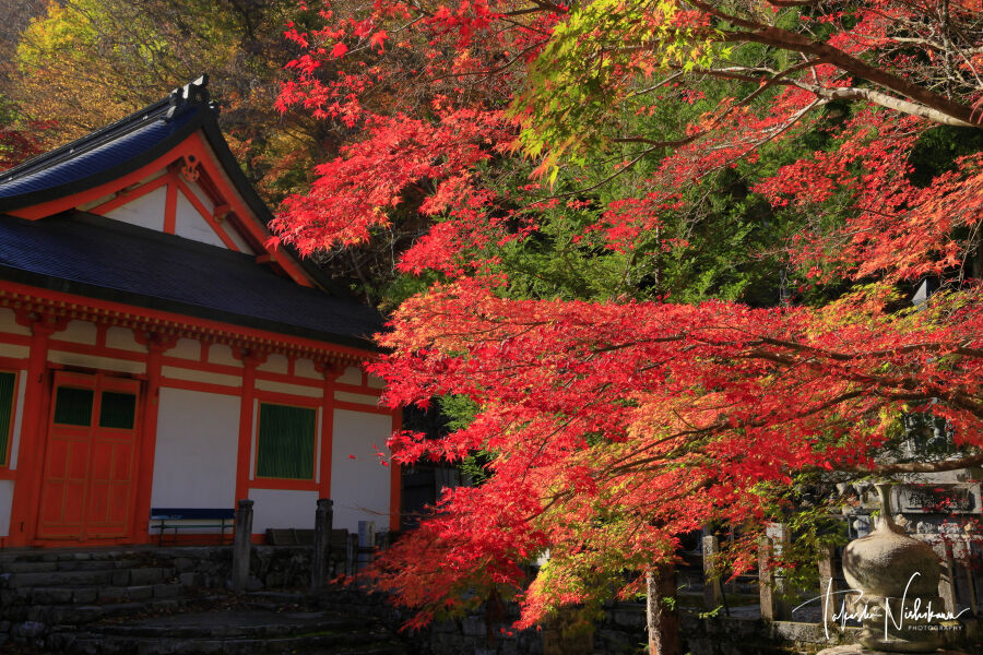 奈良県天川村の洞川温泉街の龍泉寺の紅葉 11月8日分3-3。
