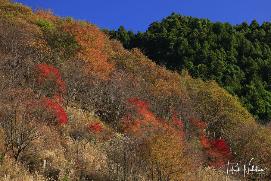 町はずれにあるススキと紅葉。ここは見頃後半。