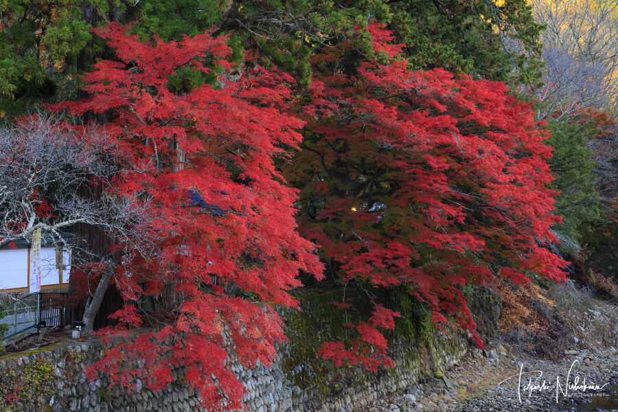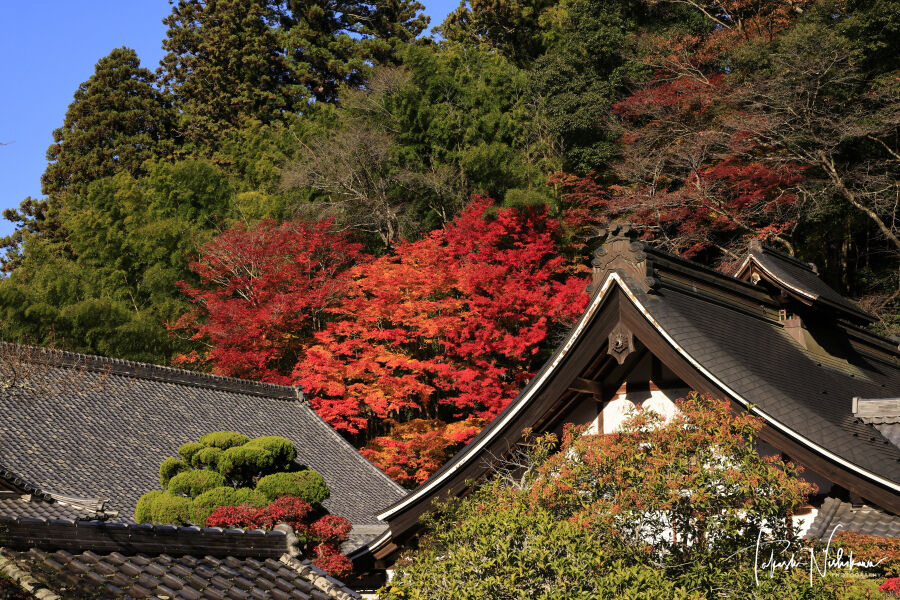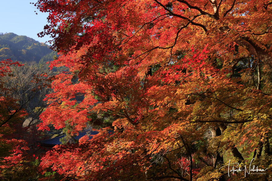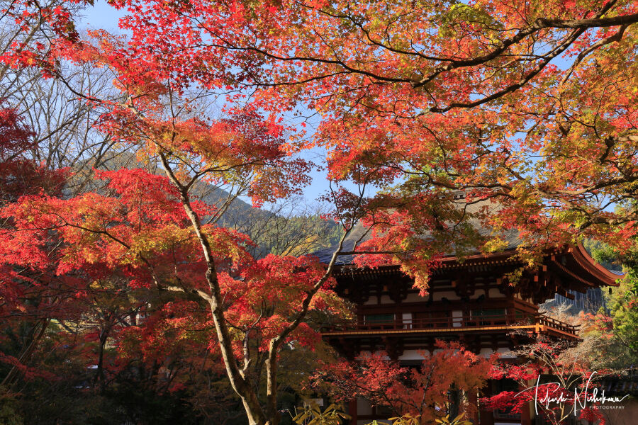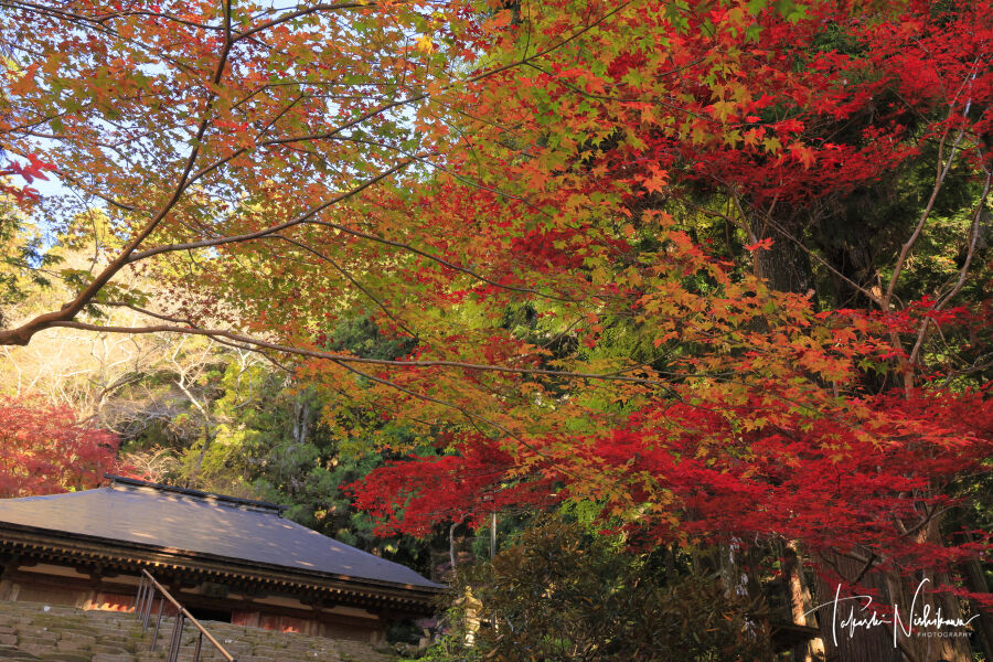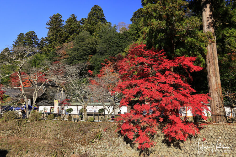2024年12月05日 奈良県宇陀市の室生寺の紅葉 12月1日分4-1。 奈良県宇陀市の室生寺の紅葉 12月1日分4-1。朝は曇り、次第に快晴になる。朝7時35分に西名阪の法隆寺ICから入り、名阪国道の針ICで下りて、室生寺へ向かう。8時20分ごろに到着。駐車場は、500~600円。25分に太鼓橋へ。日曜日とあって、開門前には20人ほど。太鼓橋の左側のカエデはやや散りが多い。川沿いの紅葉は、見頃。8時半に中へ。拝観600円。JAF割で500円。http://www.murouji.or.jp/境内で一番遅く見頃になる鎧坂の左側の大きな木が色変わり中。真ん中や右の方は見頃。本堂前もまだ色変わり中、ここは赤くはならない。朝のうちはまだ曇っているだろうと思って来たのだが、開門時にはすでに雲一つない快晴。太陽を隠すような雲もなく、ピーカンだとここは撮り難いので、少しだけ撮影。 タグ :#奈良県#宇陀市#室生寺#紅葉