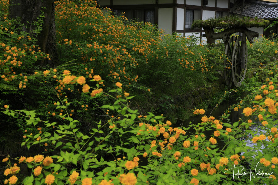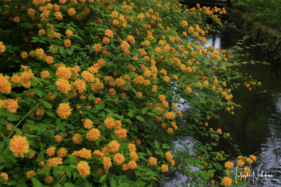山吹は満開見頃。観光客が多くてやや撮りにくい。