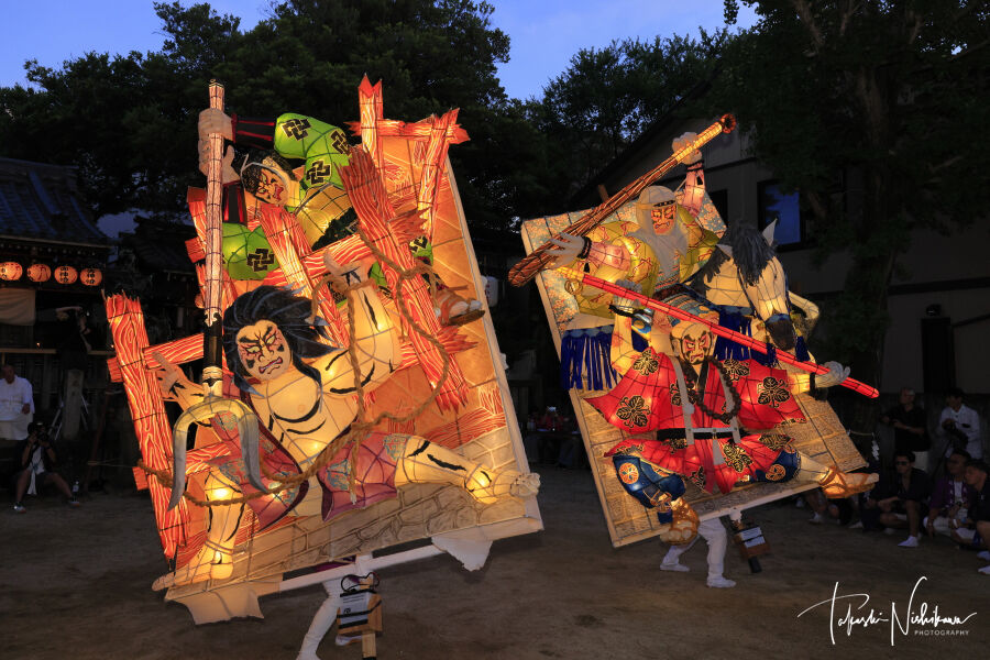 6時10分から、神前舞。全部で七町あり、各町で2~3の万燈がある。