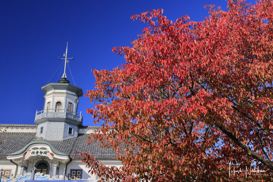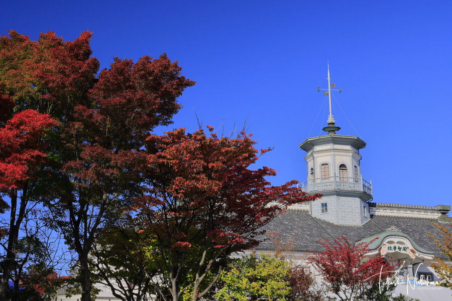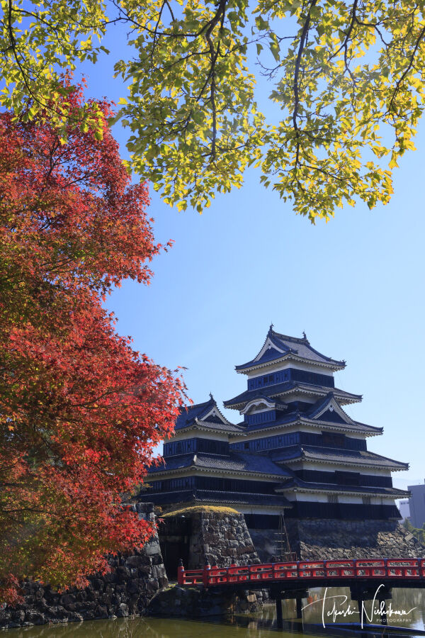 長野県松本市の松本城・旧開智学校校舎と紅葉 11月11日分2-2。