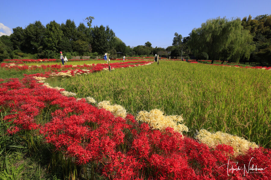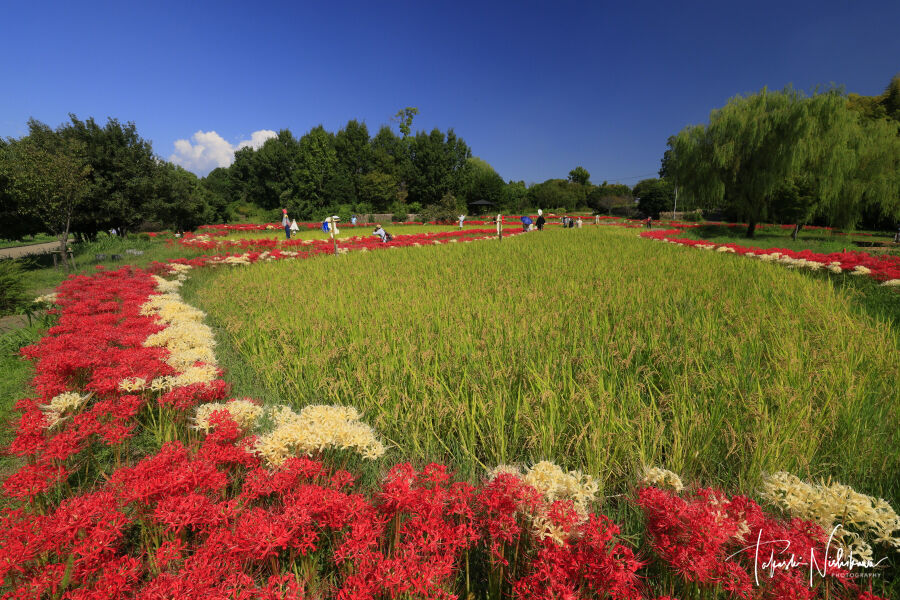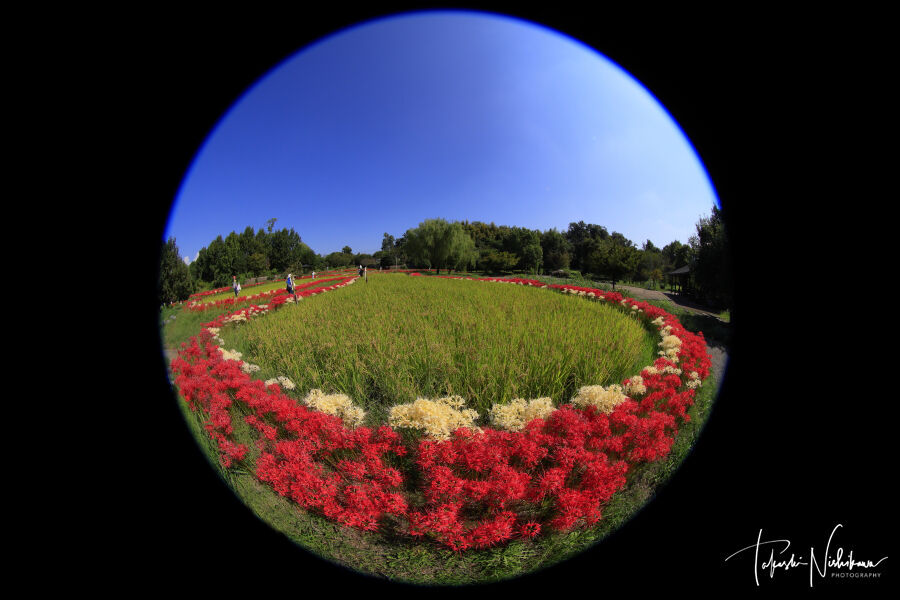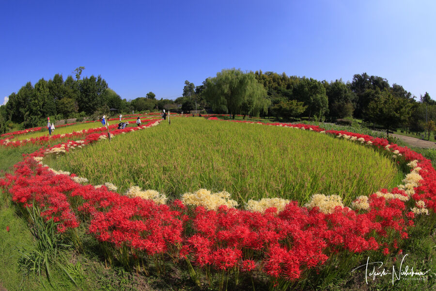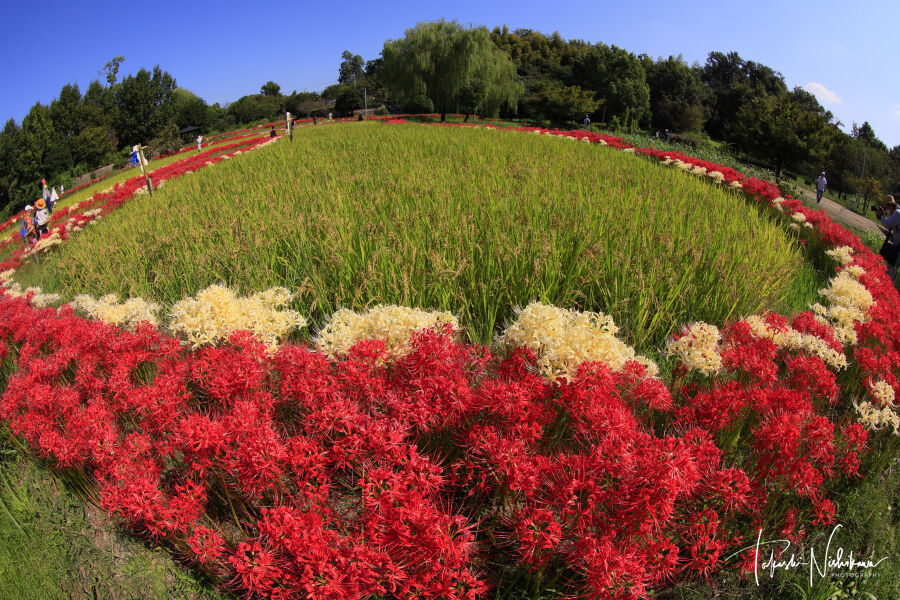 2022年10月01日 大阪府枚方市の山田池公園の実りの里の彼岸花 10月1日分2-2。 大阪府枚方市の山田池公園の実りの里の彼岸花 10月1日分2-2。天気は快晴。一度帰宅して、7時半ごろ出発。下道を北上、生駒経由。8時45分ごろに、枚方市の山田池公園へ。園内自由。駐車場は、2ヶ所あるが南側の第二駐車場が実りの里に近い。1時間まで 平日 260円、土日祭日 390円。2時間まで 平日 460円、土日祭日 510円。3時間まで 平日 640円、土日祭日 640円。http://yamadaike.osaka-park.or.jp/紅白の彼岸花は、実りの里にある棚田の周りにある。ここは紅白が一緒に咲いていて、白色が多いのが珍しい。1番の見頃から2日目という感じで、全体の2/3くらいがやや白っぽい。でもアップでなければあまりわからない感じ。奇麗なところを前景に撮影。一度いい写真が撮れた場所には、何回も行かないんですが、前回持って行かなかった魚眼レンズで撮りたかったんで再訪しました。前回2020年に来た時の記事↓https://coolheartgallery.livedoor.blog/archives/7585824.html前回来た時は案山子はなかったが、今回はいろんな案山子があった。シンプルな案山子はいいんだけど、ドラエモンとかゴルゴ13とかは、絵的には微妙な感じなので、撮りにくい。 タグ :#大阪府#枚方市#山田池公園#田んぼ#彼岸花#実りの里#案山子