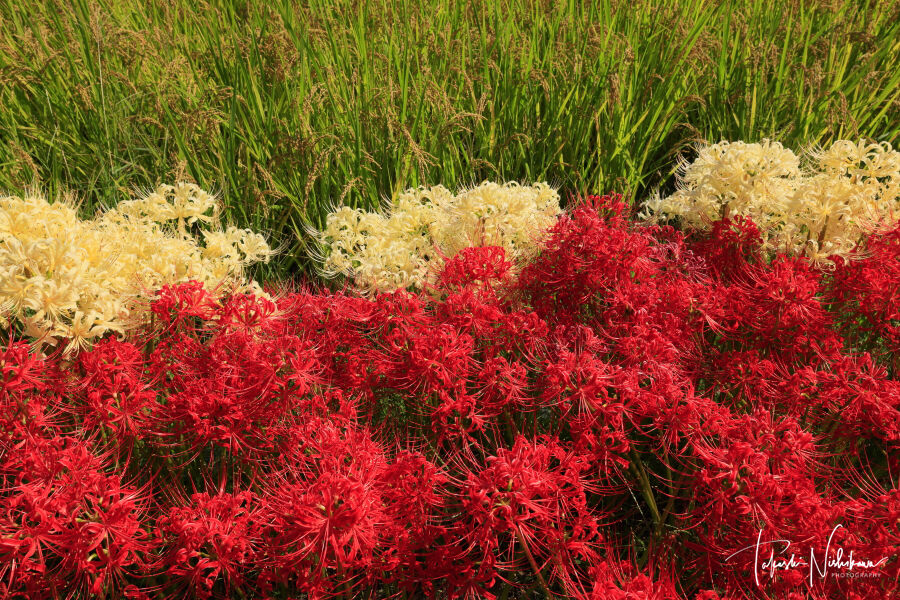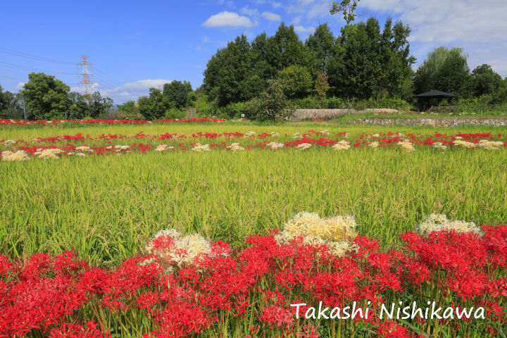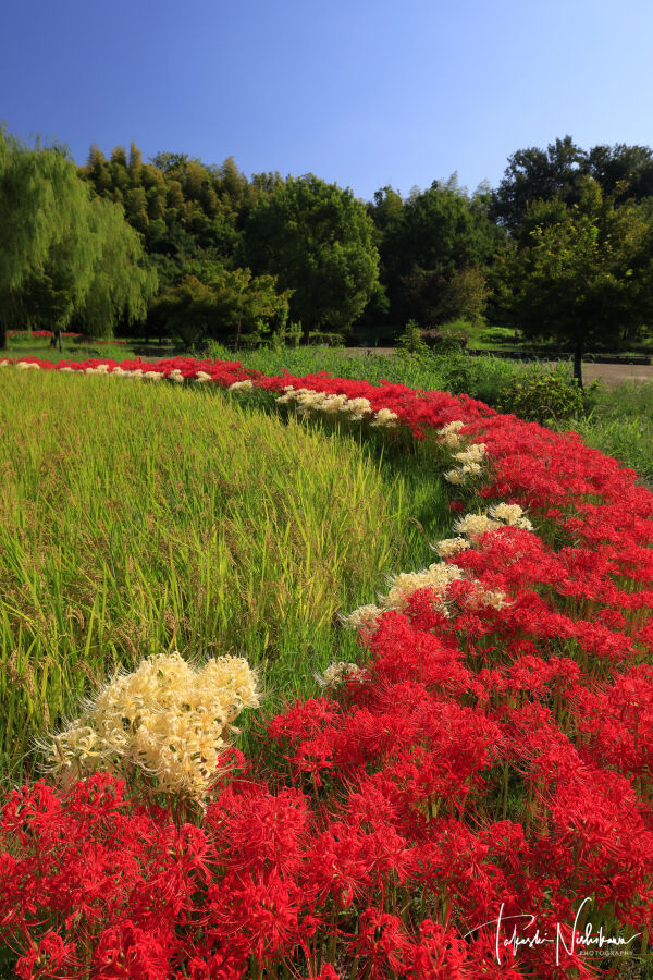 2020年09月29日 大阪府枚方市の山田池公園の紅白の彼岸花 9月29日分3-1。 大阪府枚方市の山田池公園の紅白の彼岸花 9月29日分3-1。天気は晴れているものの雲が多い。朝から、枚方市の山田池公園へ。園内自由。駐車場は、2ヶ所あるが南側の第二駐車場が実りの里に近い。1時間まで 平日 260円、土日祭日 390円。2時間まで 平日 460円、土日祭日 510円。3時間まで 平日 640円、土日祭日 640円。http://yamadaike.osaka-park.or.jp/紅白の彼岸花は、実りの里にある棚田の周りにある。白い彼岸花の群生自体は、たまに見かけるが、ここは紅白が一緒に咲いていて、しかも結構な数があるのが珍しい。つぼみ散り混在ながら、見頃としては一番いい感じ。 タグ :#大阪府#枚方市#山田池公園#彼岸花#花#花畑#田んぼ
