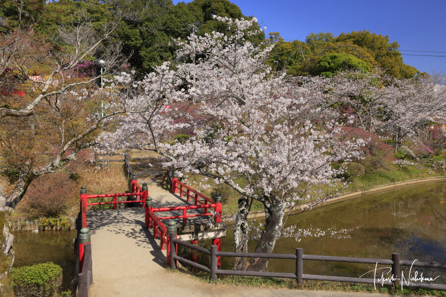 2025年04月06日 三重県津市の津偕楽公園の桜 4月4日分7-1。 三重県津市の津偕楽公園の桜 4月4日分7-1。朝は曇りだが、1日好天予報。6時45分に西名阪道の法隆寺ICから入り、名阪国道へ。すぐに小雨が降り出す。途中10分ほどコンビニ休憩。次第に晴れてくる。8時に関ICからでて、35分に津偕楽(つかいらく)公園へ。無料駐車場あり。染井吉野は7分~満開。ミツバツツジは咲き初め。https://tsukanko.jp/spot/s31/ タグ :#三重県#津市#津偕楽公園#桜