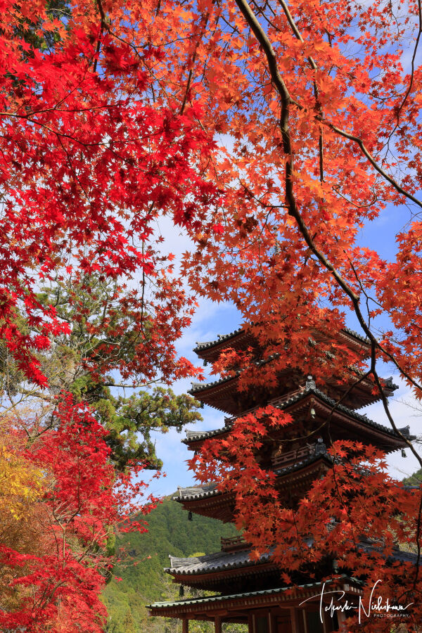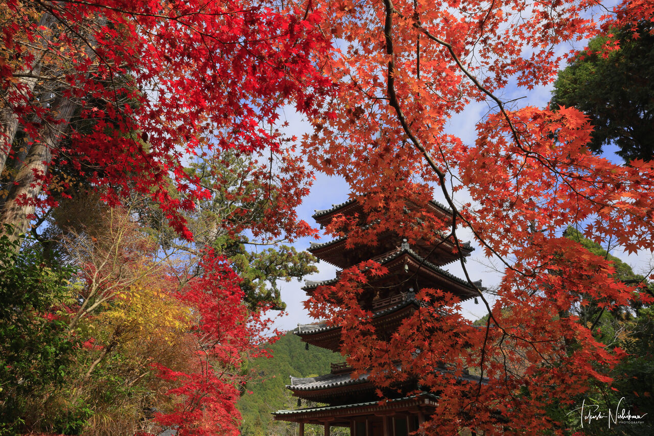 2020年11月16日 京都府木津川市の海住山寺の紅葉 11月16日分。 京都府木津川市の海住山寺の紅葉 11月16日分。天気は晴れているが雲が多い。午後から木津川市の海住山寺(かいじゅうせんじ)へ。急坂を上った山上に無料駐車場あり。入山100円。本堂拝観500円。本坊庭園は土日祝日のみ公開。三脚使用は入山料を払った人のみ。紅葉は全体的に見頃。参道の赤色と黄色から赤色に変化する楓紅葉は右手の上の方が傷みはじめで見頃後半。塔の周囲は見頃。上の展望所の方はまだ色変わり中のものが多い。http://www.kaijyusenji.jp/https://twitter.com/kaijyusenji タグ :#京都府#木津川市#海住山寺#紅葉