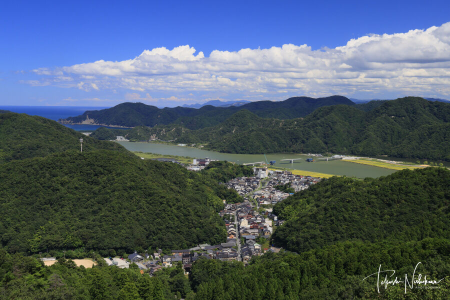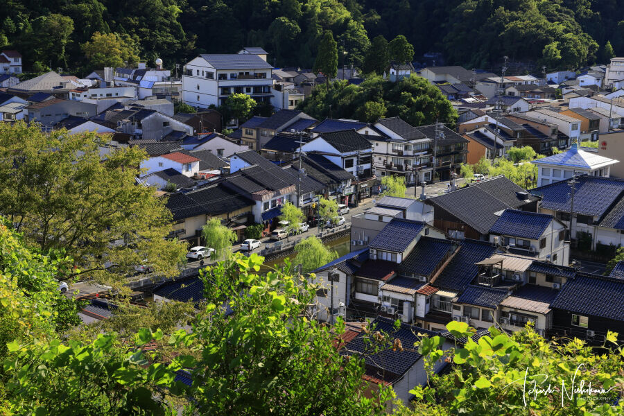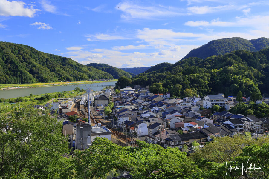 香川県宇多津町の青ノ山山頂展望台から望む瀬戸大橋と町並み 10月19日分5-3。