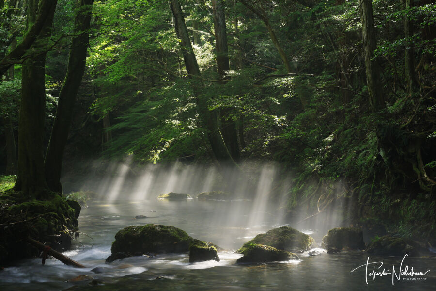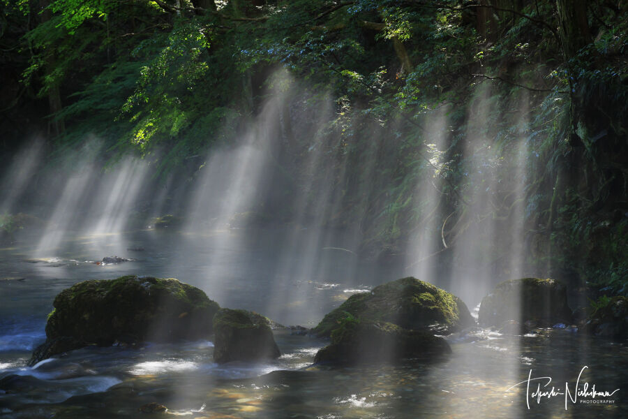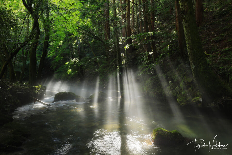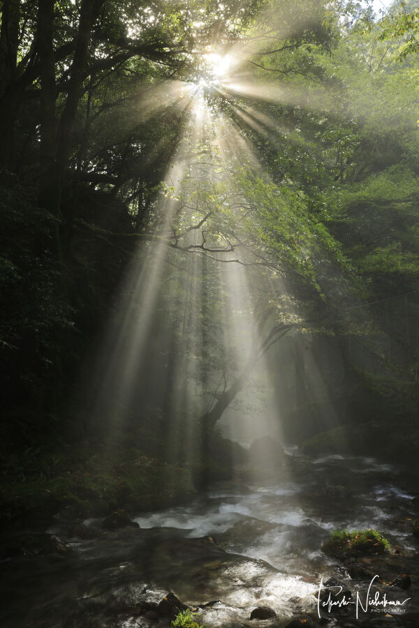 2023年09月09日 滋賀県米原市の醒井峡谷の光芒 9月5日分5-1。 滋賀県米原市の醒井峡谷の光芒 9月5日分5-1。朝4時15分にネットカフェを出て、4時40分ごろに醒井峡谷へ。空き地に車を止める。すでに友人のFさんも来ていた。他にはカメラマンはいない。前日夜半は雨、朝もまだパラパラ。湿度が高く、すでに川霧が出ている。空には雲があるが、切れ間から青空も見えてきて期待大。7時半くらいから、カーブの所では光芒が出てくる。なかなかいい感じ、リベンジ成功、やったね。8時くらいに橋の所に移動。こちらもいい感じ。 タグ :#滋賀県#米原市#醒井峡谷#光芒