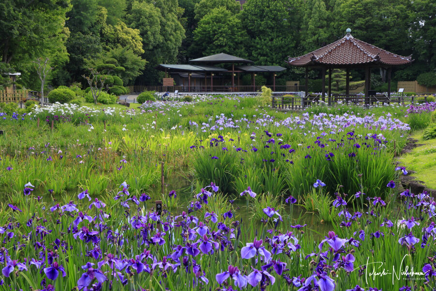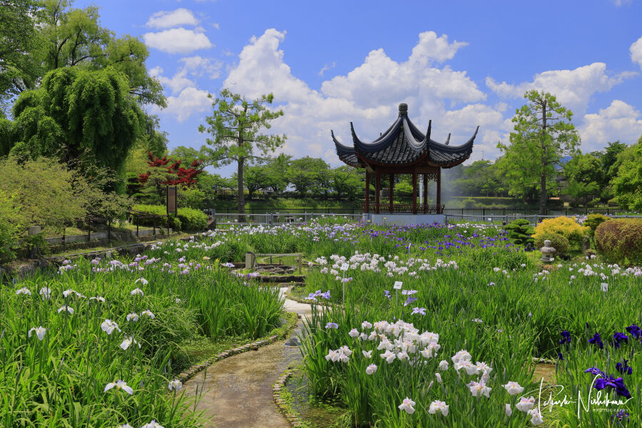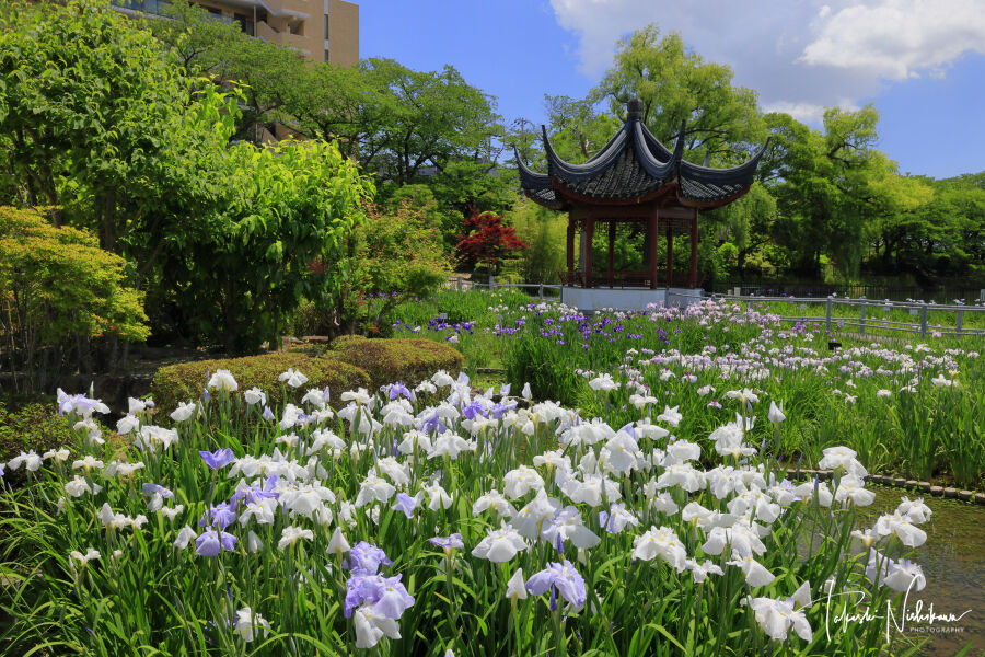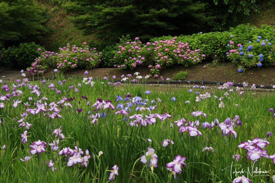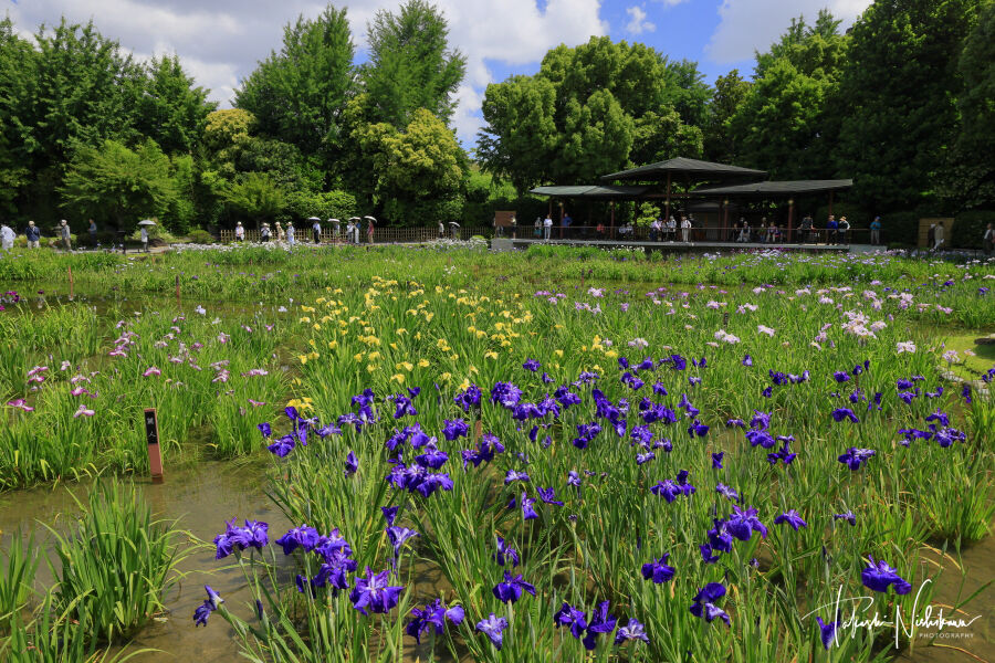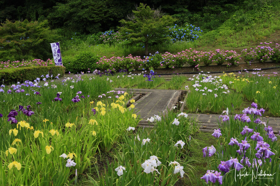 無料駐車場、トイレあり。花菖蒲は咲き初め。