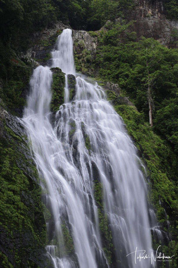 7段の滝で総落差は160m。見えてるのは3.4.5段目で、3段目で80mある。