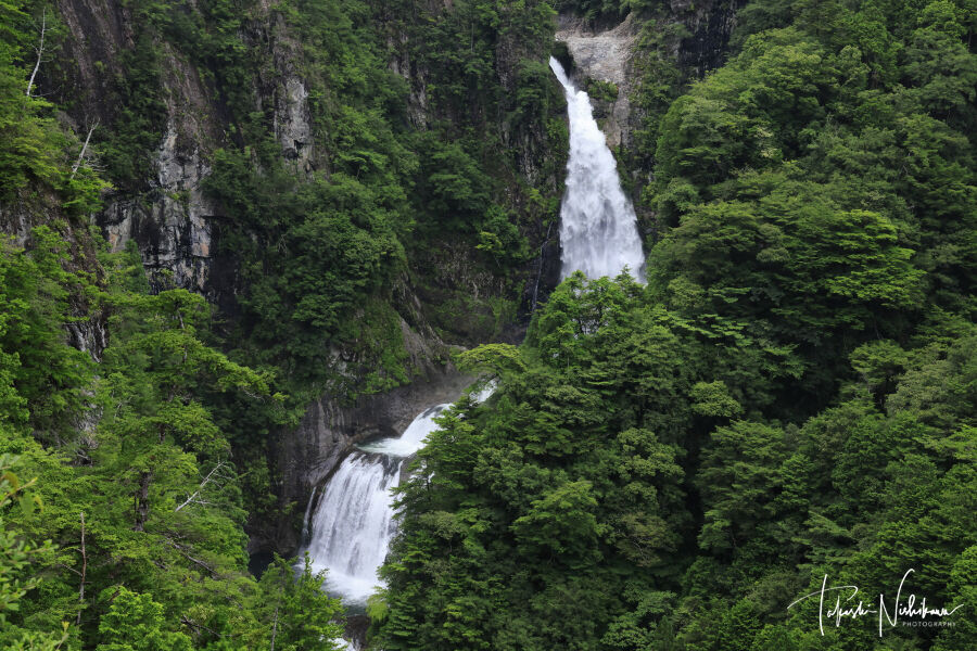 1時10分から10分ほど、道沿いから見える不動滝とその上に見える銚子滝も撮影。