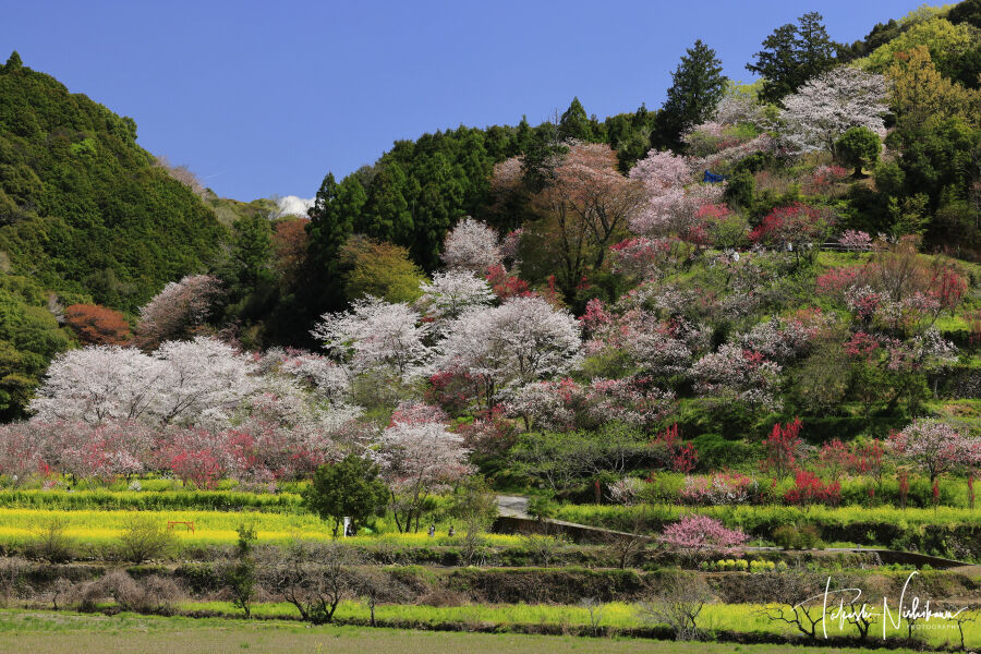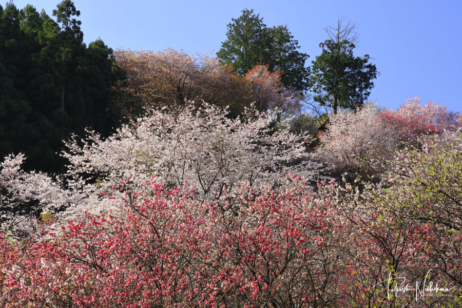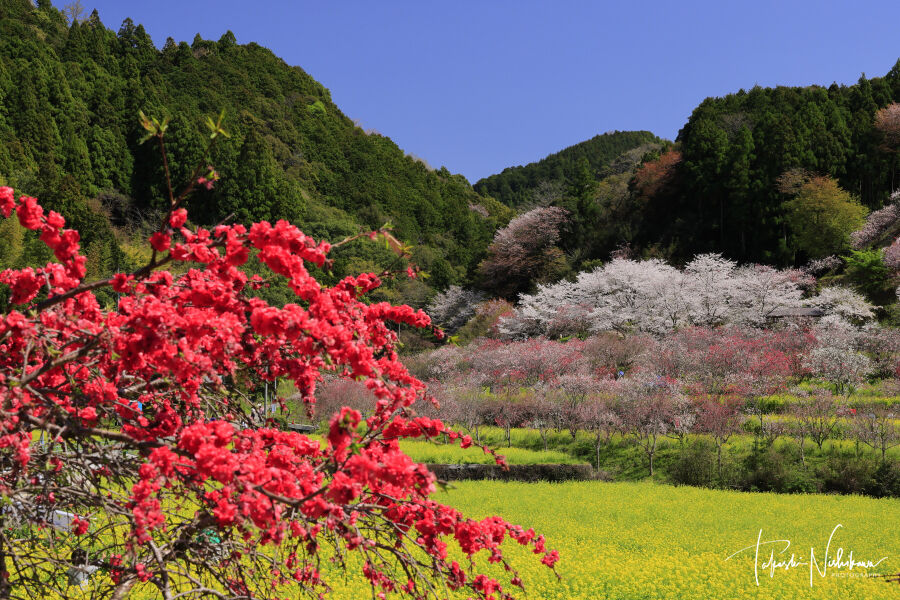手前のほうの花桃はまだみたいだが、全体的に見頃旬。